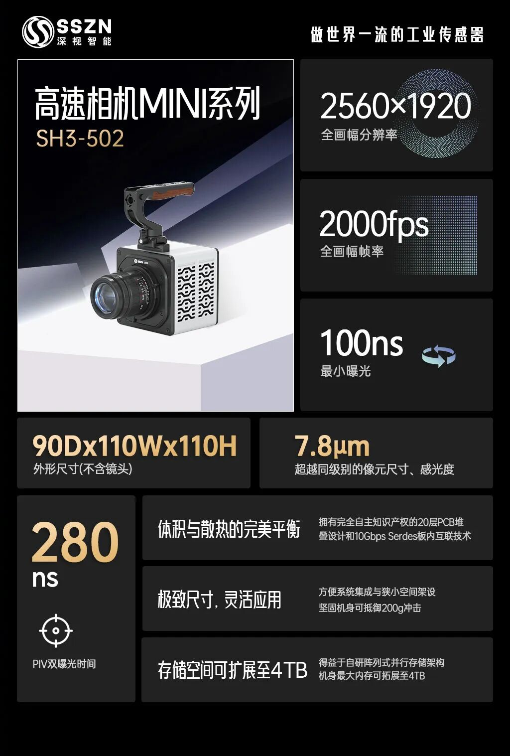 选用深视智能高速摄像机(型号:SH3-502),满画幅时具备2560*1920的高分辨率,帧率可达2000FPS。该实验可清晰呈现仿生飞蛾翅膀的细微结构,高帧率捕捉翅膀在高速扇动过程中的每个瞬间变化。
