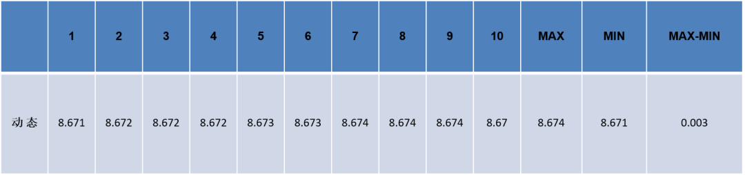 数据说明:使用SC10015进行10次动态测量,高度差重复性为0.003mm。